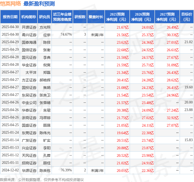最新盈利预测明细如下: